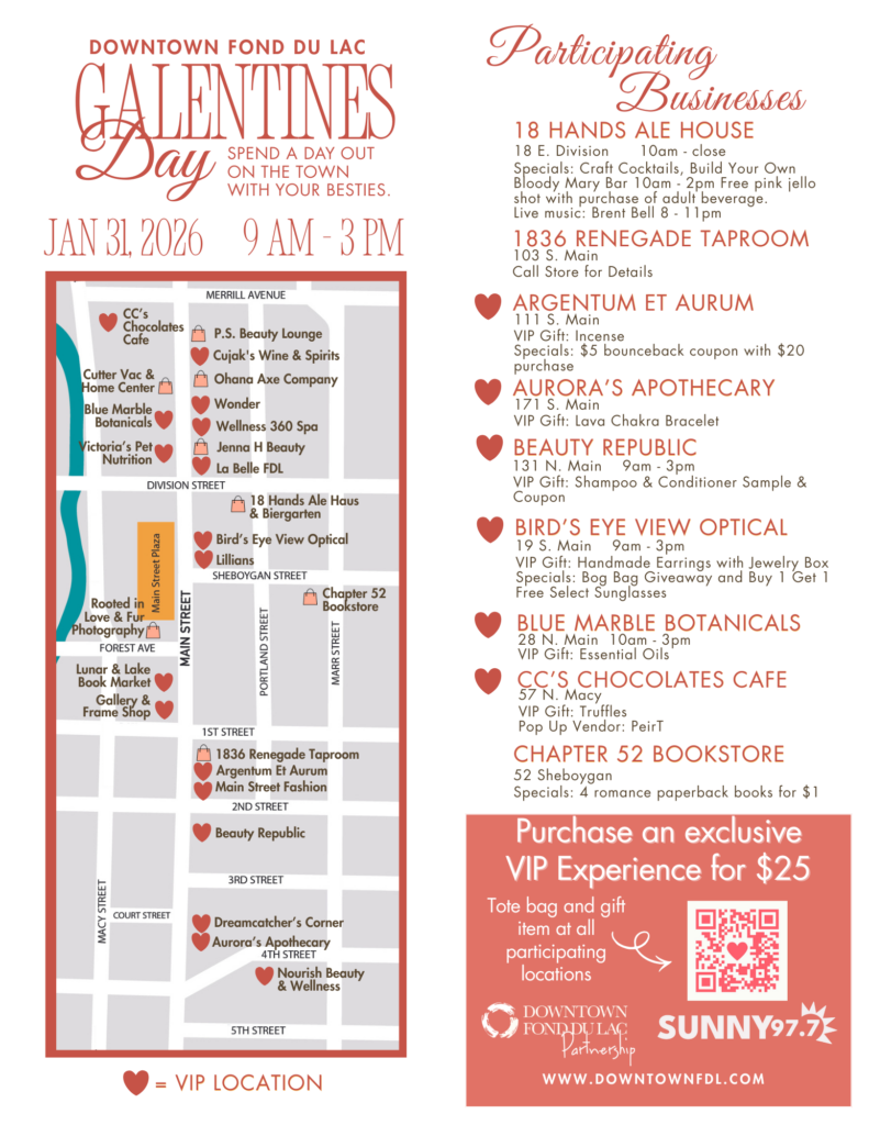Share the love with the most important gals in your life by spending a day out on the town in Downtown Fond du Lac!